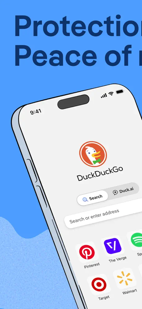 DuckDuckGo 免費網路瀏覽器 是 Google Chrome 和搜尋的隱私保護替代品。它內設無縫隱私保護,包括私人搜尋、跟蹤器阻止、增強加密、電子郵件保護等。 DuckDuckGo 應用程式提供最全面的線上隱私保護,按一下按鈕即可啟動。只需下載一次,就能取得可以每天使用的全新瀏覽器,在你搜尋和瀏覽時提供萬無一失的保護,在收取電子郵件或使用應用程式時,也可以使用追蹤防護,目前許多人使用的瀏覽器在預設狀態下都並未提供上述保護。