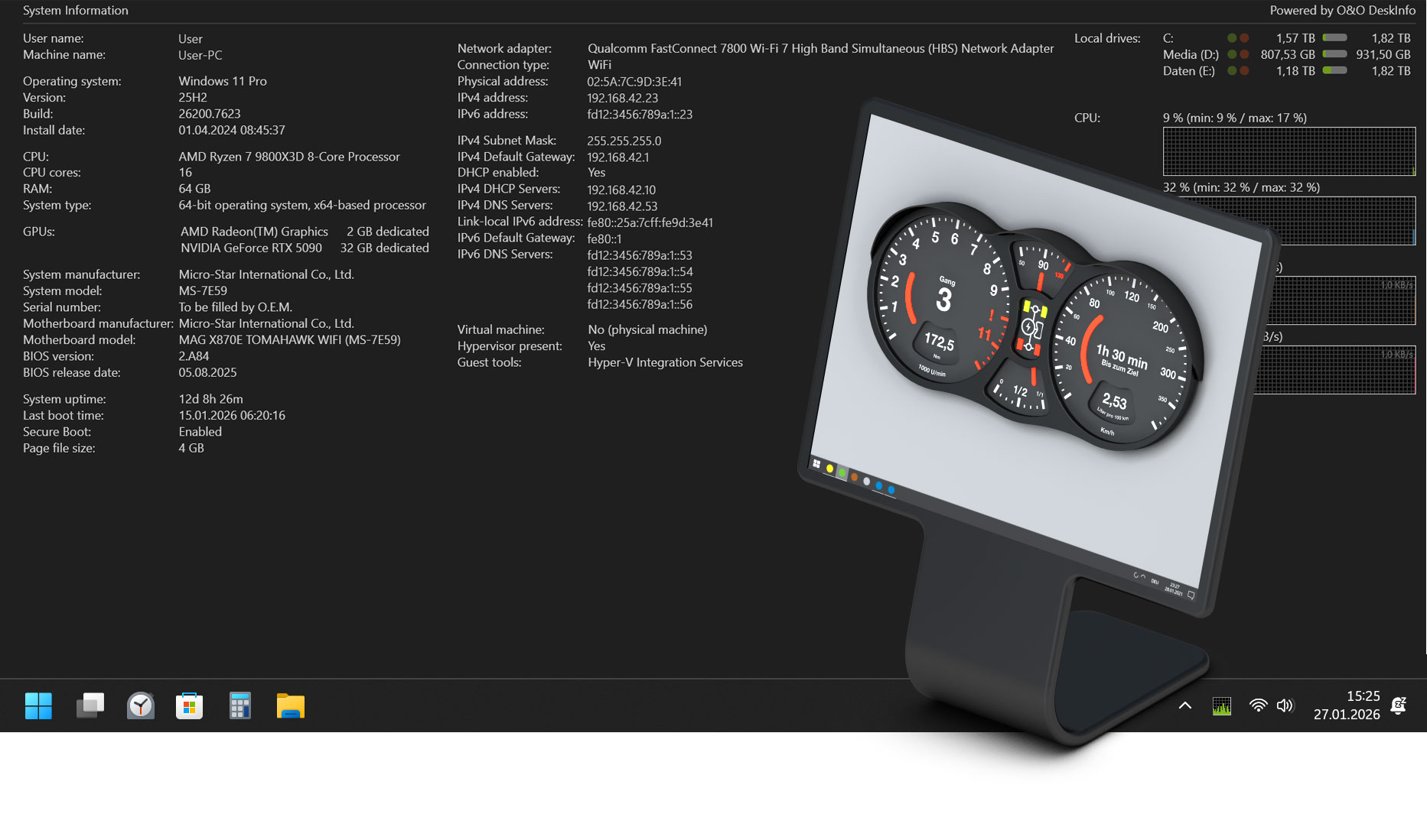 O&O DeskInfo 是由 O&O Software GmbH 開發的一款免費軟體,它能夠將電腦系統的所有資訊整合在桌面上,方便用戶隨時查看。 O&O DeskInfo 是一款由領先的系統工具開發商 O&O Software GmbH 所開發的系統資訊查看工具。它旨在為用戶提供一個簡潔、直觀的界面,讓用戶能夠快速獲得電腦的性能與設定資訊。這款工具特別適合系統管理員、IT 專業人員,以及對於電腦性能有高度關注的一般用戶。