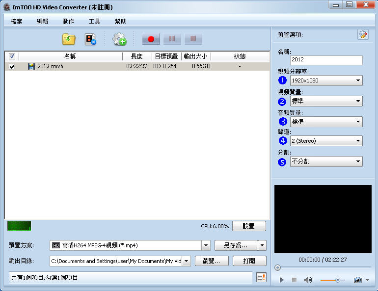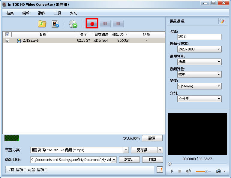 我們可以直接地於 ImTOO HD Video Converter 進行影片的預覽