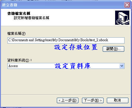 選擇書籍類型 本地書籍:書籍儲存在使用者的電腦磁碟上面,只能提供使用者本身使用。 遠端書籍:書籍儲存在一個伺服器上面,通常是一個資料庫伺服器,例如SQL Server資料庫伺服器。使用者的電腦透過網路,可以連接到這個伺服器上面。該伺服器可以支援多個使用者連接,從而實現多使用者同時操作/共享同一個書籍。