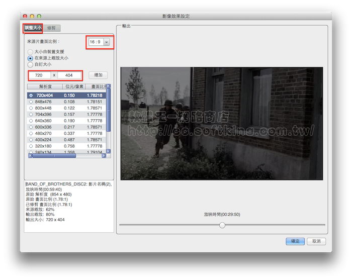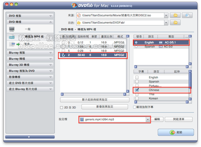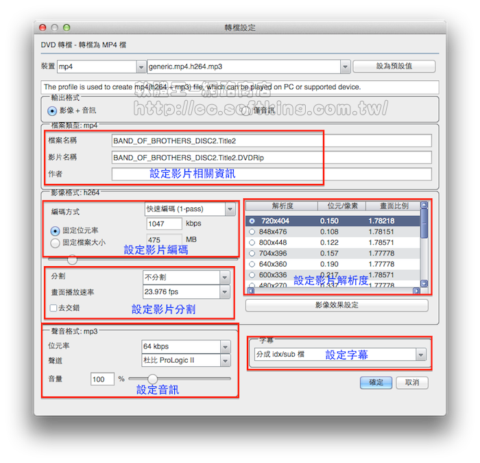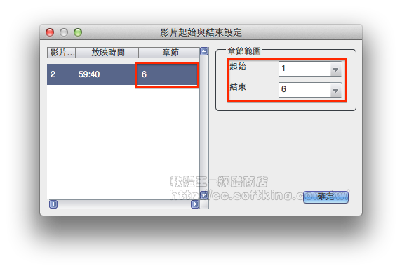 點擊"設定影片起始與結束設定"在此您可以選擇想要轉檔的章節。