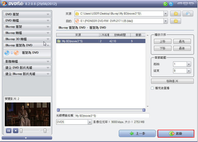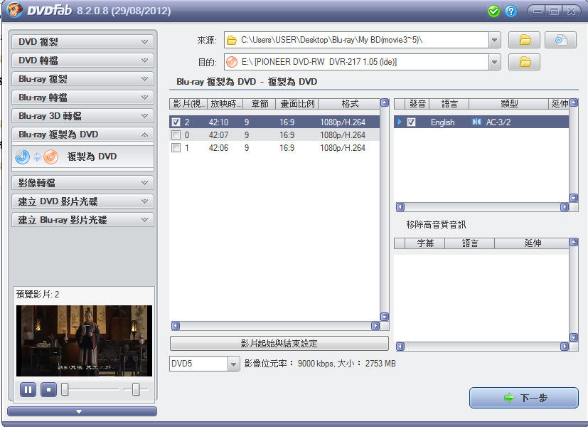 將藍光 (M2TS) 視頻轉換成 DVD (vob) 視頻, DVDFab Blu-ray to DVD Converter