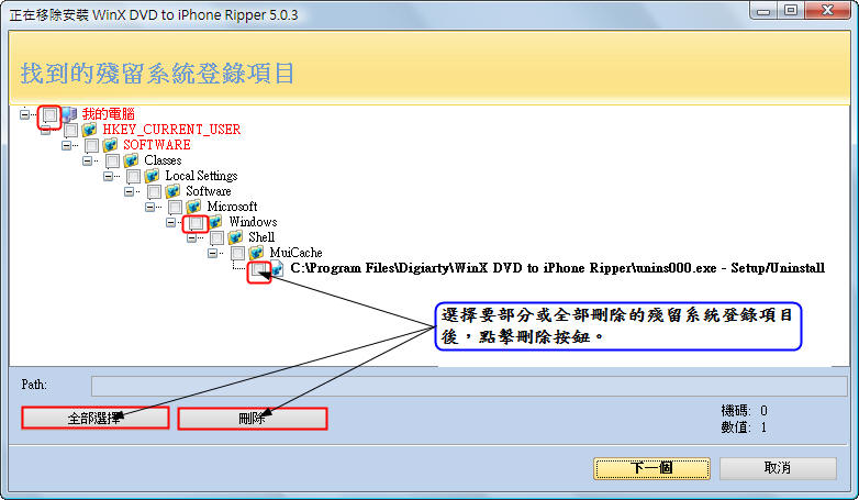 ‧標準移除,可於移除後,掃描並移除殘存檔案