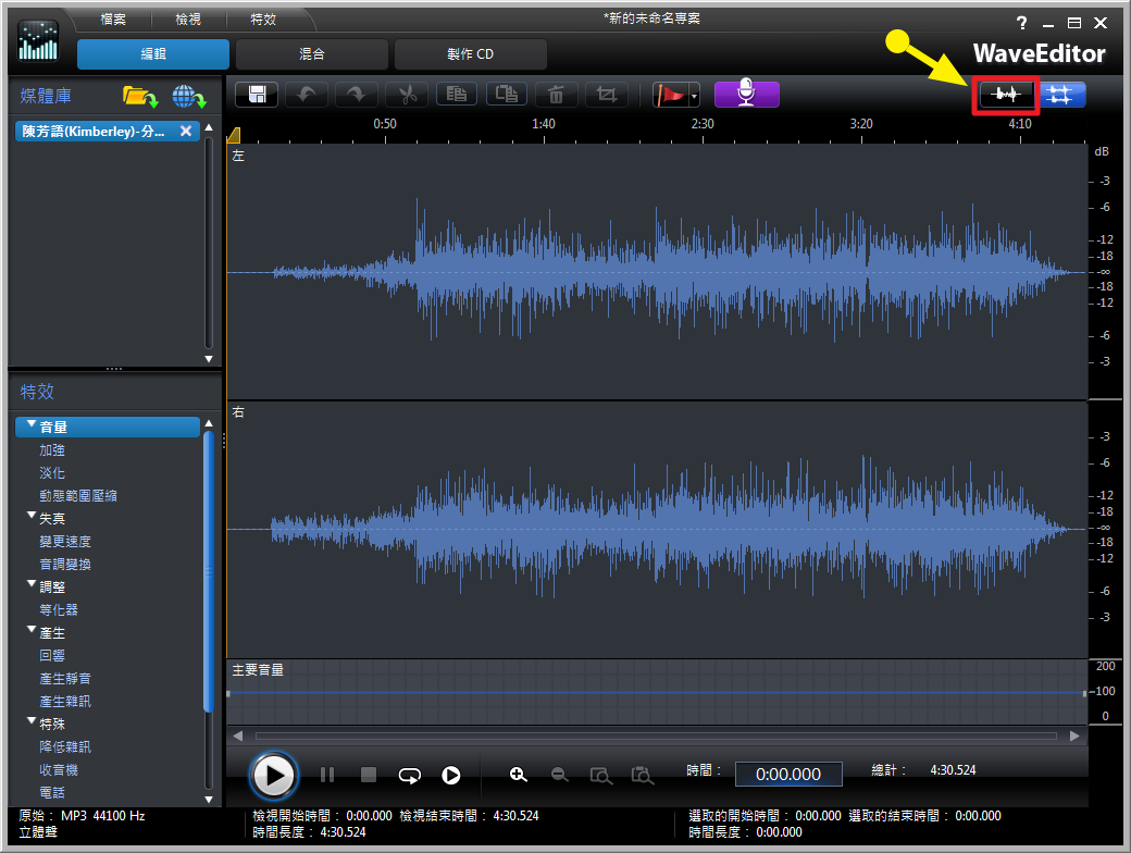 淡化音樂人聲,自製 KTV 伴奏。(訊連威力酷燒 - WaveEditor)