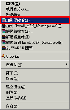 在欲製成壓縮檔的檔案上按右鍵,再選擇「加到壓縮檔(A)...」
