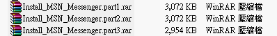 成功製作成三個分片壓縮檔 而分片檔案名稱格式則為「檔名.part1.rar」「檔名.part2.rar」「檔名.part3.rar」...依此類推。