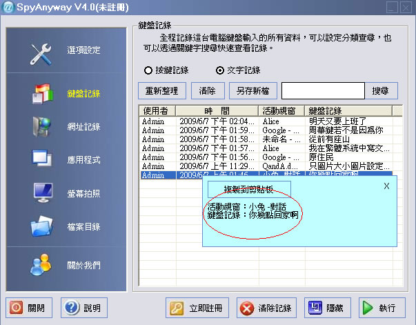 SpyAnyway軟體使用教學-鍵盤記錄