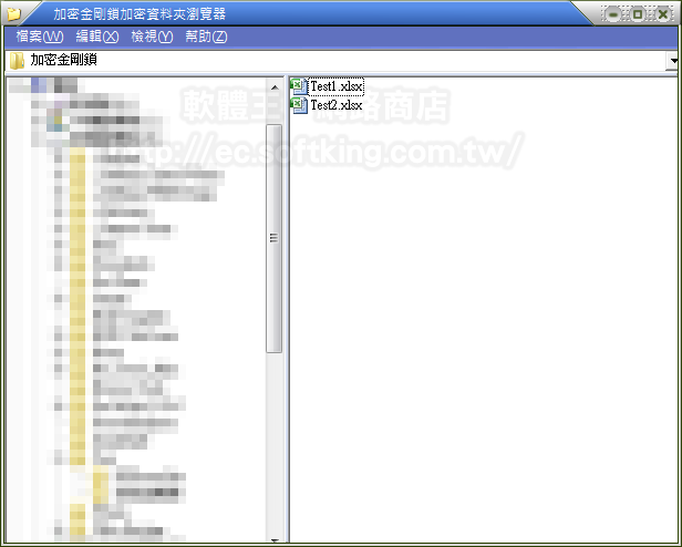日後,我們若欲存取加密後之資料夾內之資料,於開啟資料夾後,並輸入該資料夾之密碼,加密金剛鎖會自動以其內建之「資料夾瀏覽器」進行開啟(如圖所示)。 因為,「資料夾瀏覽器」之操作方式與 Windows 內建之檔案總管,略有不同。所以,在此我們提供一個較為便利且大家習慣的操作方式:在自動開啟「資料夾瀏覽器」後,將之縮小(非關閉),再以 Windows 內建之檔案總管瀏覽該資料夾即可 (*)。 * 請注意!使用完畢後,務必關閉「資料夾瀏覽器」,如此方能令該加密資料夾,再自動加密,確保資料夾內資料的安全。