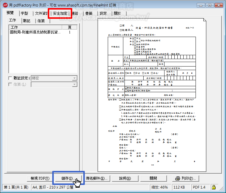 利用 pdfFactory Pro 將檔案製成 PDF,並具有著極高的安全性(pdfFactory Pro)