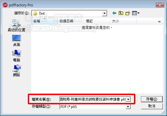接下來,我們只要指定其 PDF 檔案,存放的位置以及檔名即可。
