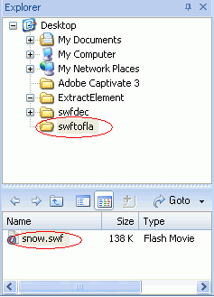 1-1 打開閃客精靈。 1-2 在“資源管理器Explorer”視窗下找到“swftofla”文件夾。“snow.swf”為自動顯示在下方面板裡。