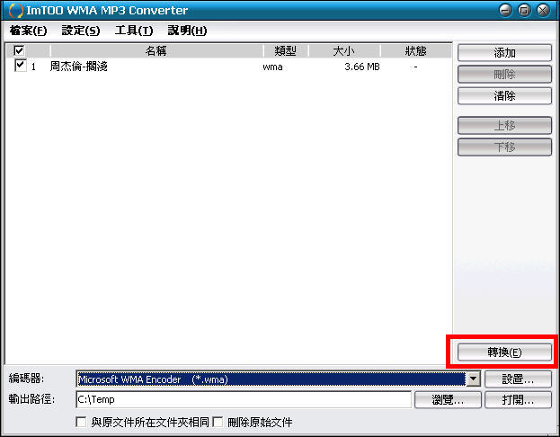 將您的WMA音樂轉檔為MP3檔案(ImTOO WMA MP3 Converter)